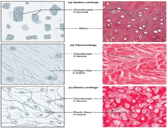 Cartilage is of three types i.e. hyaline cartilage, fibrous cartilage and calcified cartilage.