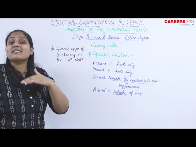- Lacunar collenchyma: They have thickenings on walls facing the intercellular spaces.