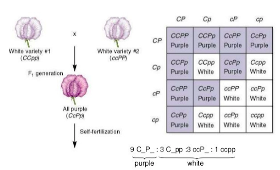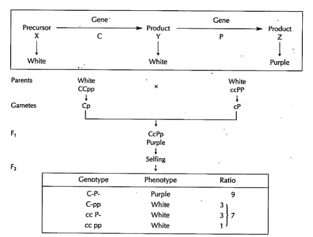 Modified dihybrid ratio 9:7 observed by Bateson and Punette was found in