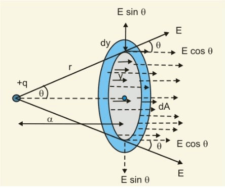 & =\left(\frac{1}{4 \pi \varepsilon_0} \cdot \frac{q}{\left(a^2+y^2\right)}\right)(2 \pi y d y)\left(\frac{a}{\left(a^2+y^2\right)^{1 / 2}}\right) \\