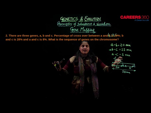 The map distance between genes A and B is 3 units, between B and C 10 units, and between C and A 7 units. The order of the genes in a linkage map constructed on the above data would perhaps be