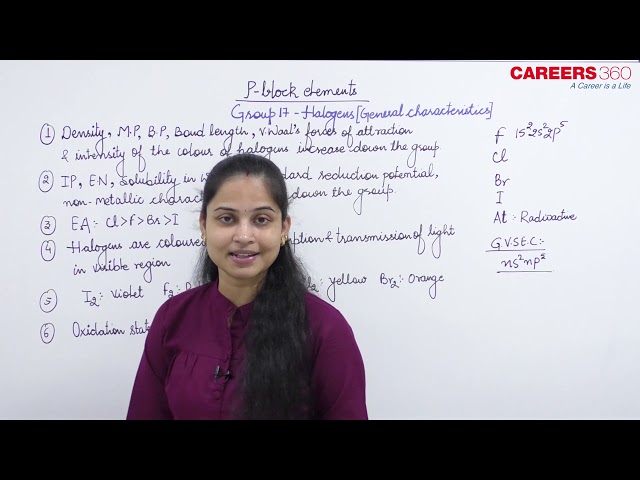 All the halogens exhibit –1 oxidation state. However, chlorine, bromine and iodine exhibit + 1, + 3, + 5 and + 7 oxidation states also. The higher oxidation states of chlorine, bromine and iodine are realised mainly when the halogens are in combination with the small and highly electronegative fluorine and oxygen atoms, e.g., in interhalogens, oxides and oxoacids. The oxidation states of +4 and +6 occur in the oxides and oxoacids of chlorine and bromine. The fluorine atom has no d orbitals in its valence shell and therefore cannot expand its octet. Being the most electronegative, it exhibits only –1 oxidation state.