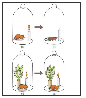 Plants absorb CO2 from the atmosphere. Plants need light and water for photosynthesis. The amount of O2 released is equal to the amount of CO2 absorbed |