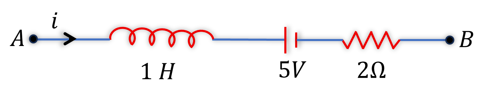 AB is a part of an electrical circuit (see figure). The potential difference " $V_A-V_B$ ", at the instant when current $I=2 \mathrm{~A}$ and is increasing at a rate of 1 amp/second, is: