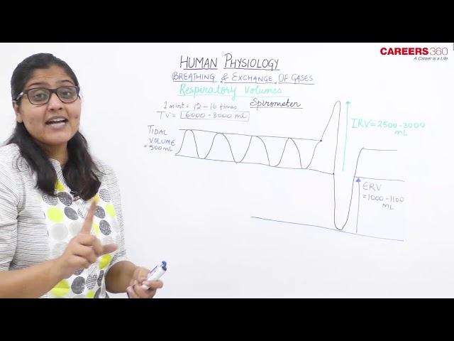 Tidal Volume (TV): Volume of air inspired or expired during normal respiration. It is approx. 500 mL per breath, i.e., a healthy man can inspire or expire approximately 6000 to 8000 mL of air per minute. (500 x 14-16 breaths per minute). However, 500 mL does not reach the alveoli as some amount of Air is lost and this is known as Dead space.