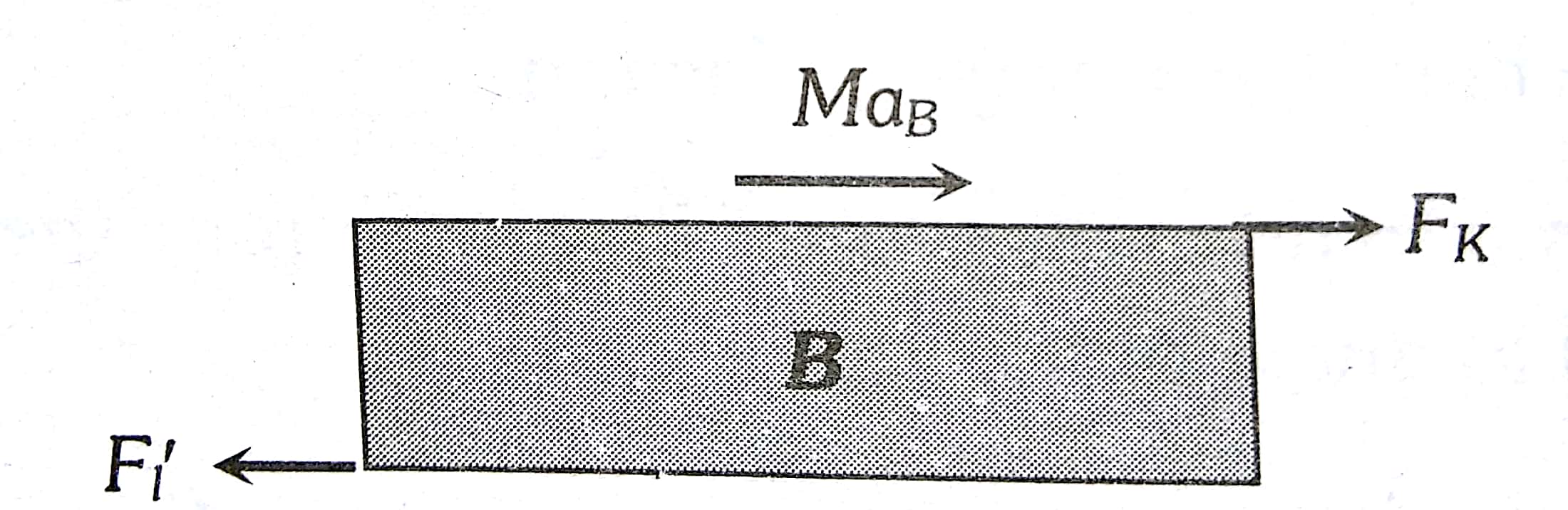 $\begin{aligned} F-F_k & =M a_B \\ \text { i.e. } \quad a_B & =\frac{\left[F-\mu_k m g\right]}{M}\end{aligned}$