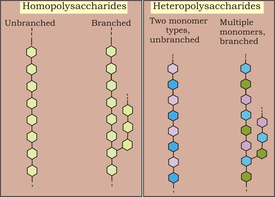 Heteropolysaccharides contain two or more different kinds of monomeric units