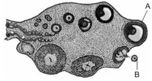 A diagrammatic section of ovary is given below.Choose the option which correctly identifies Aand B.