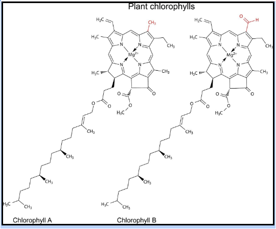 "Chlorophyll a” differs from "chlorophyll b" in having